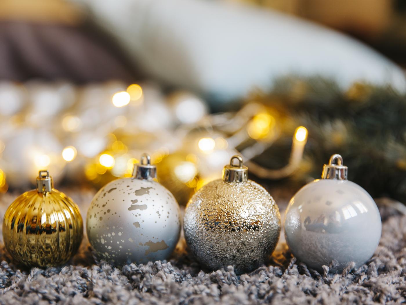 Wallpaper Ribbon and white Christmas tree balls on Christmas