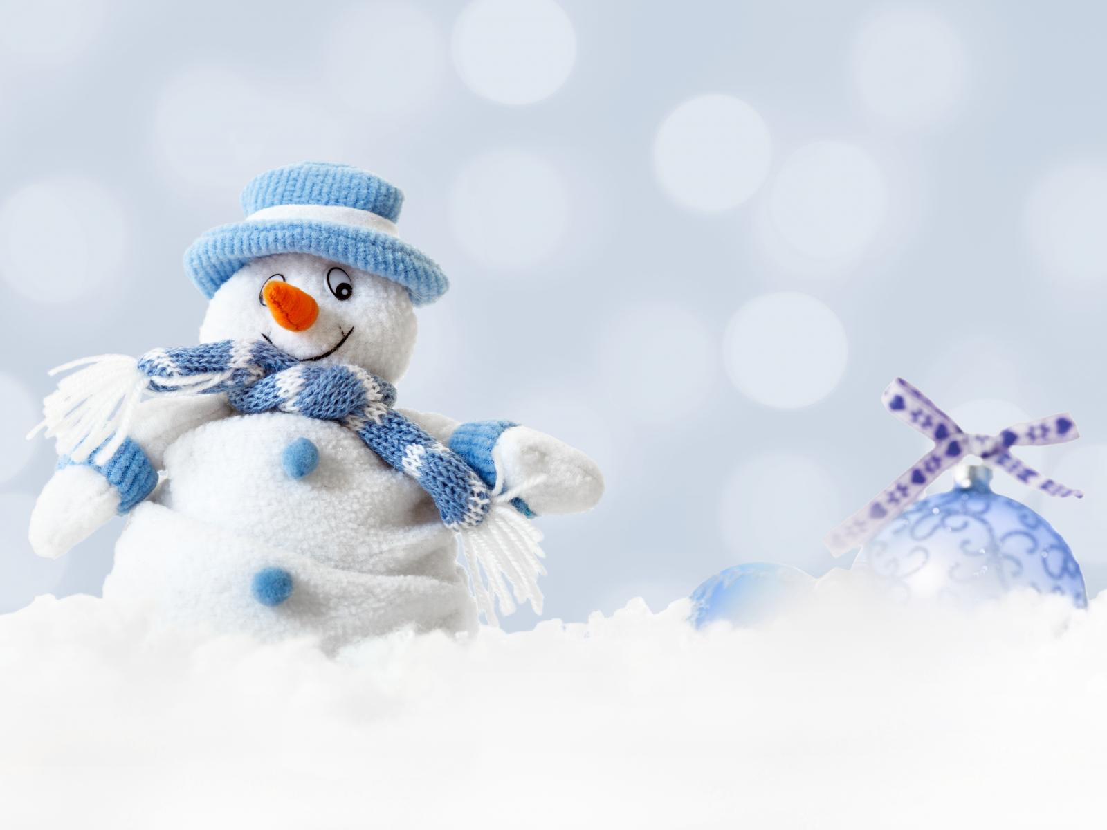 Wallpaper Toy snowman and Christmas tree toy on the snow