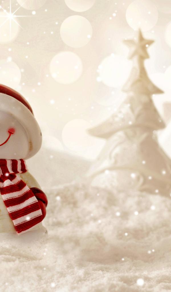 Wallpaper A smiling snowman is standing on white snow