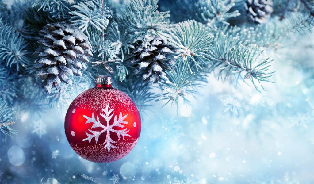 Wallpaper Beautiful Christmas ball on a frost-covered spruce branch
