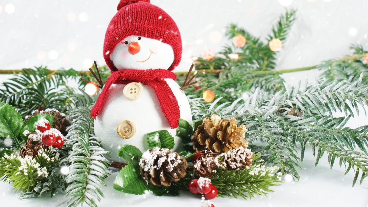 » Wallpaper Little snowman with fir branches