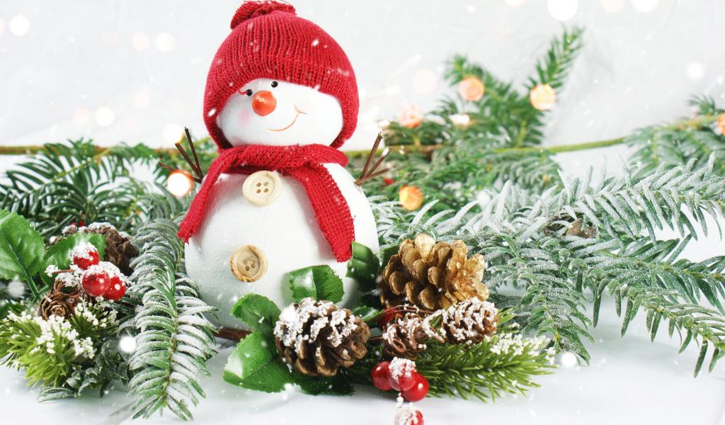 » Wallpaper Little snowman with fir branches