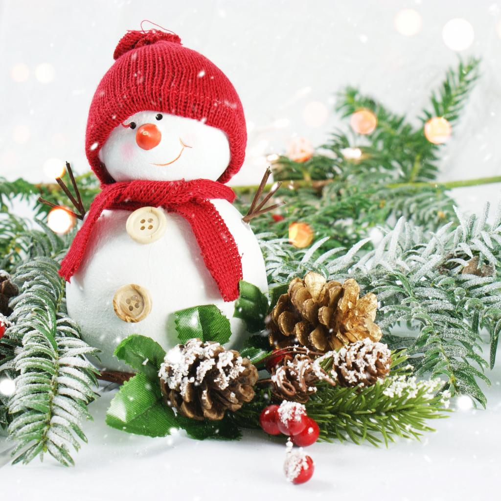 Wallpaper Little snowman with fir branches