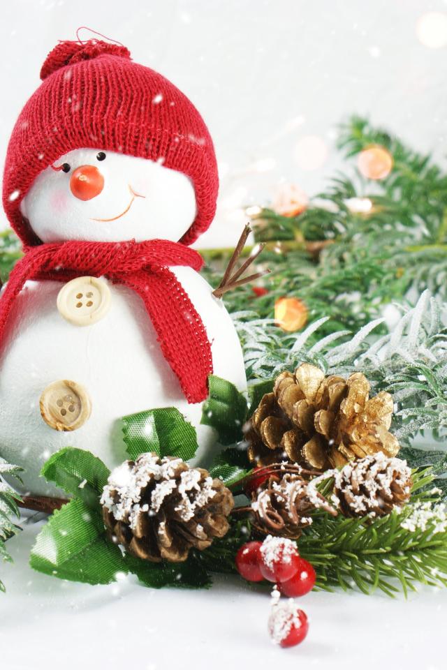 Wallpaper Little snowman with fir branches
