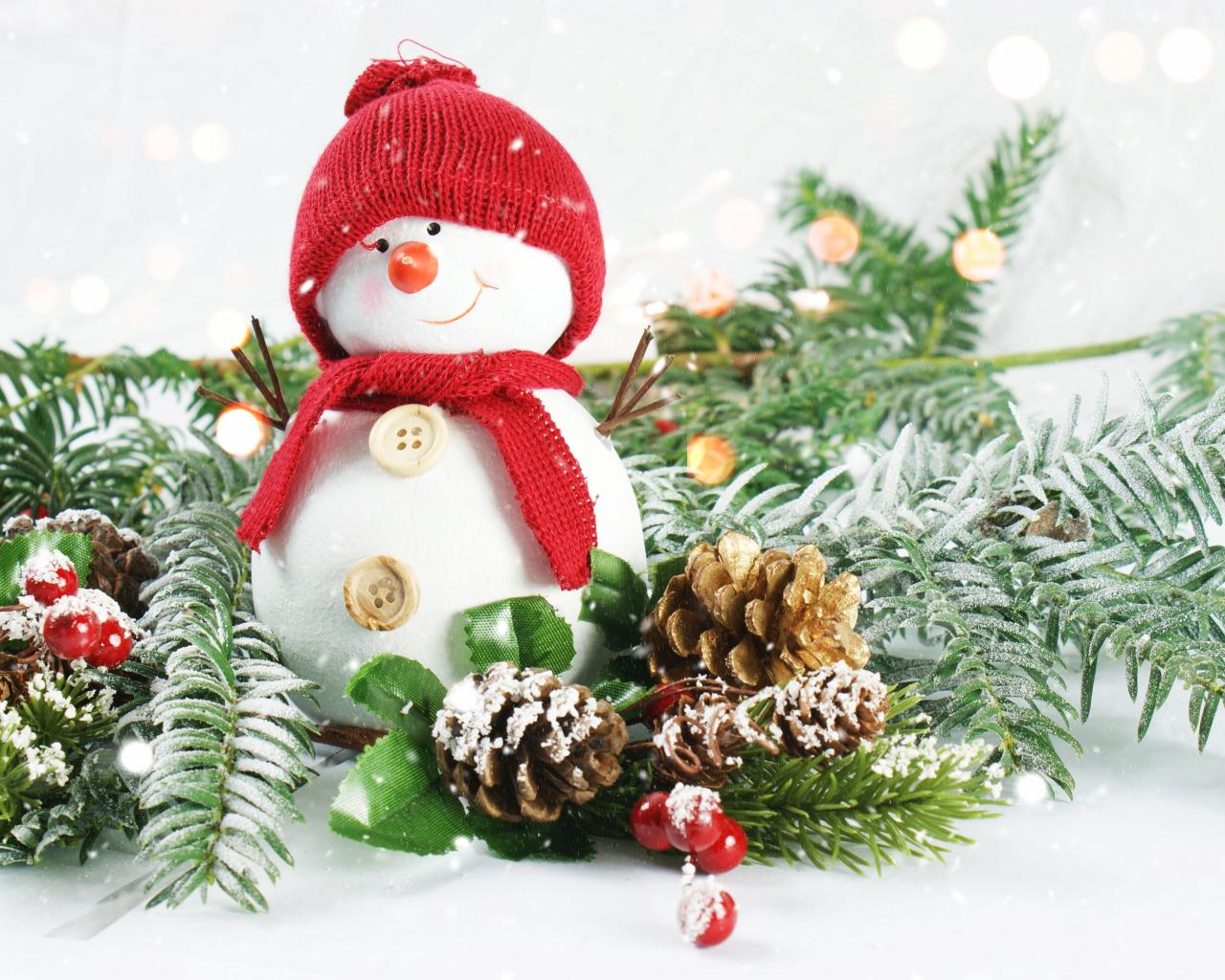 » Wallpaper Little snowman with fir branches