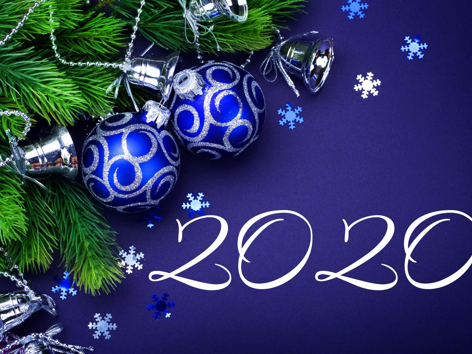 Wallpaper Beautiful balls with spruce branch for the New Year 2020