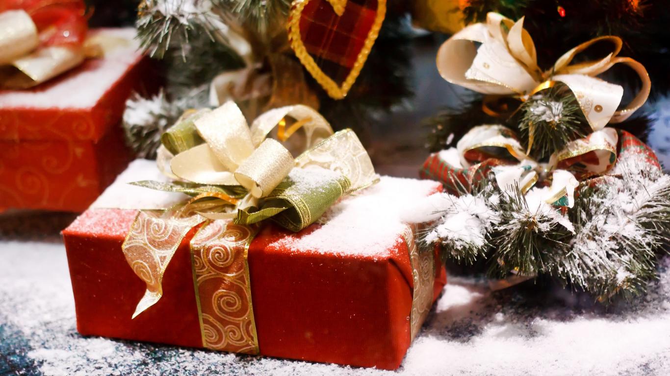Wallpaper Gifts covered with snow for the New Year 2020
