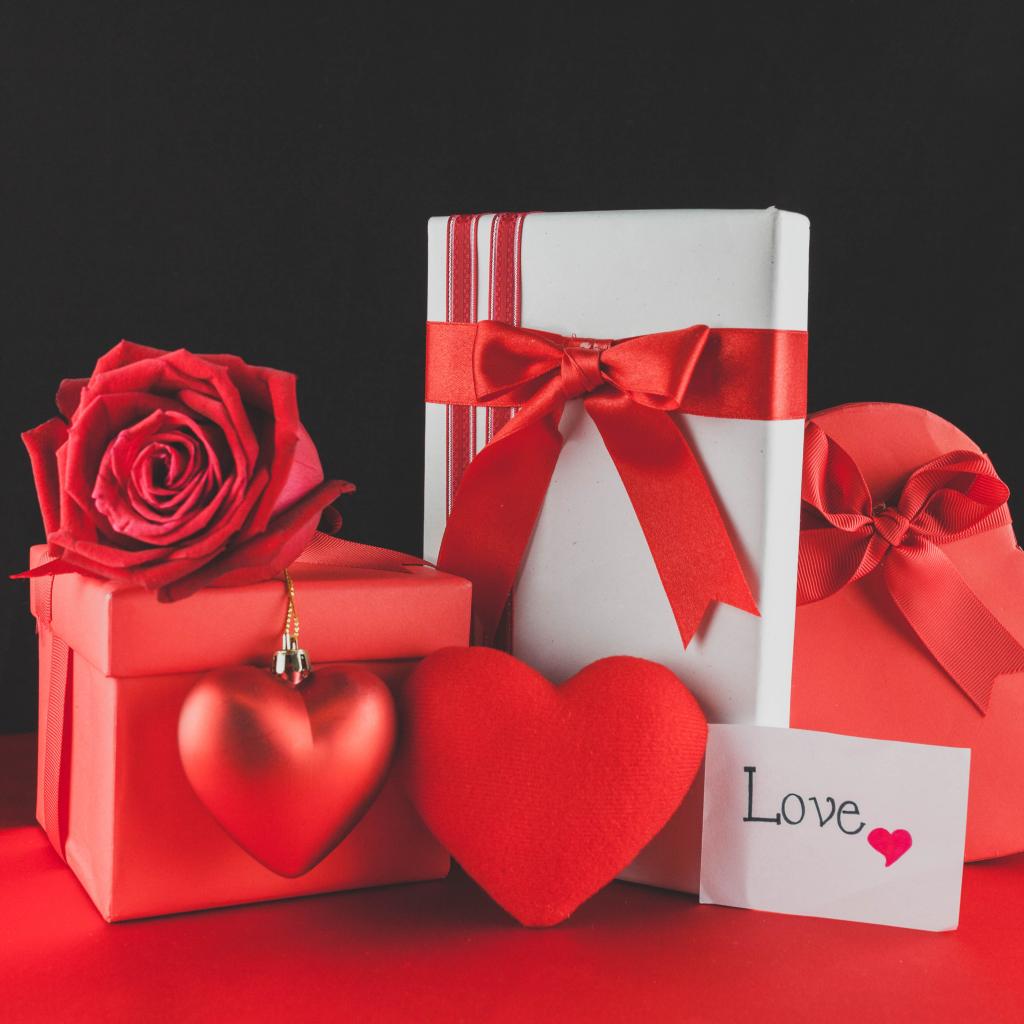 Wallpaper Gifts with a red rose and heart on February 14