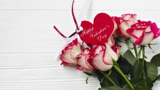 Wallpaper Frame and bouquet of roses on the table for Valentine`s Day