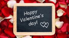 Wallpaper Gift and pink rose petals Happy Valentine`s Day greeting card