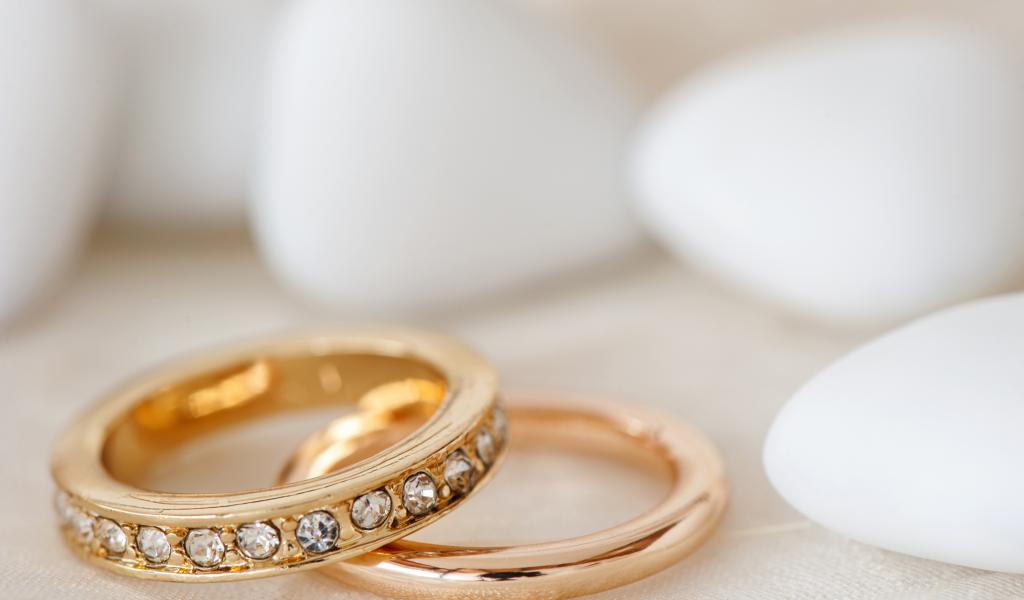 Wallpaper Two gold wedding rings on a cushion for a wedding