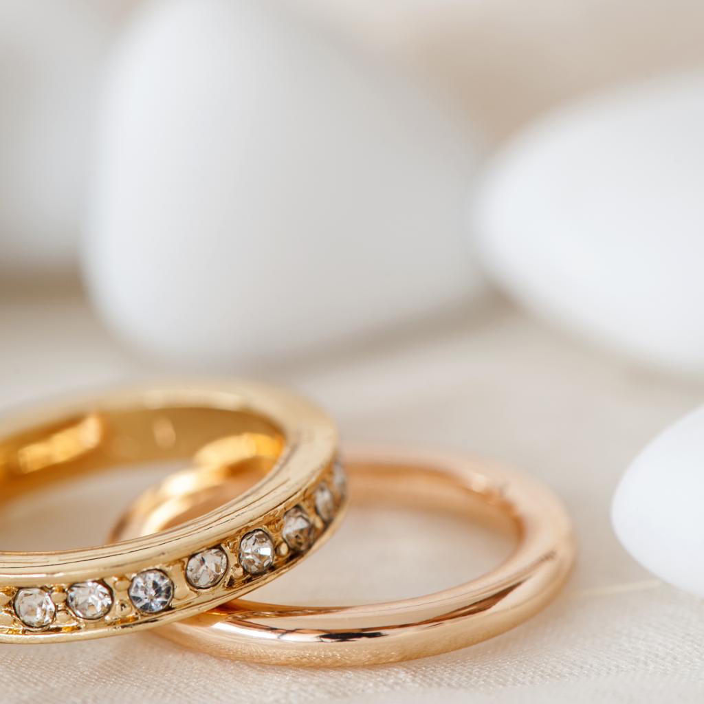 Wallpaper Two gold wedding rings on a cushion for a wedding