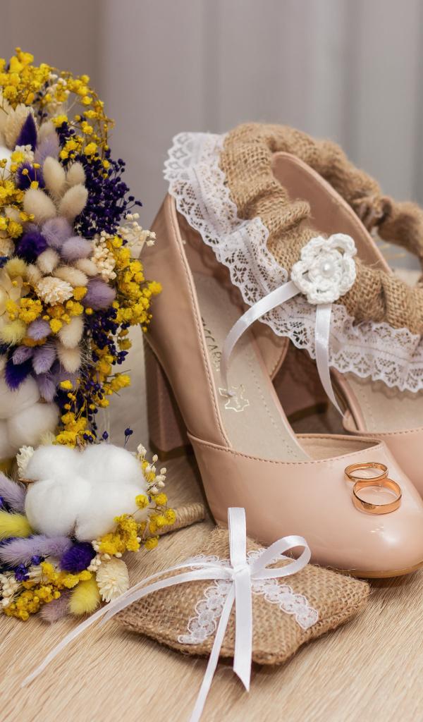 Wallpaper Bouquet of flowers, shoes and wedding rings