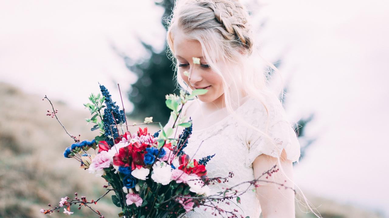 Wallpaper Beautiful girl bride with a wedding bouquet in her hands