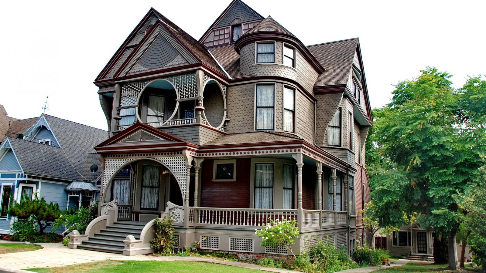 Wallpaper Bridge with a house on the water under a beautiful sky