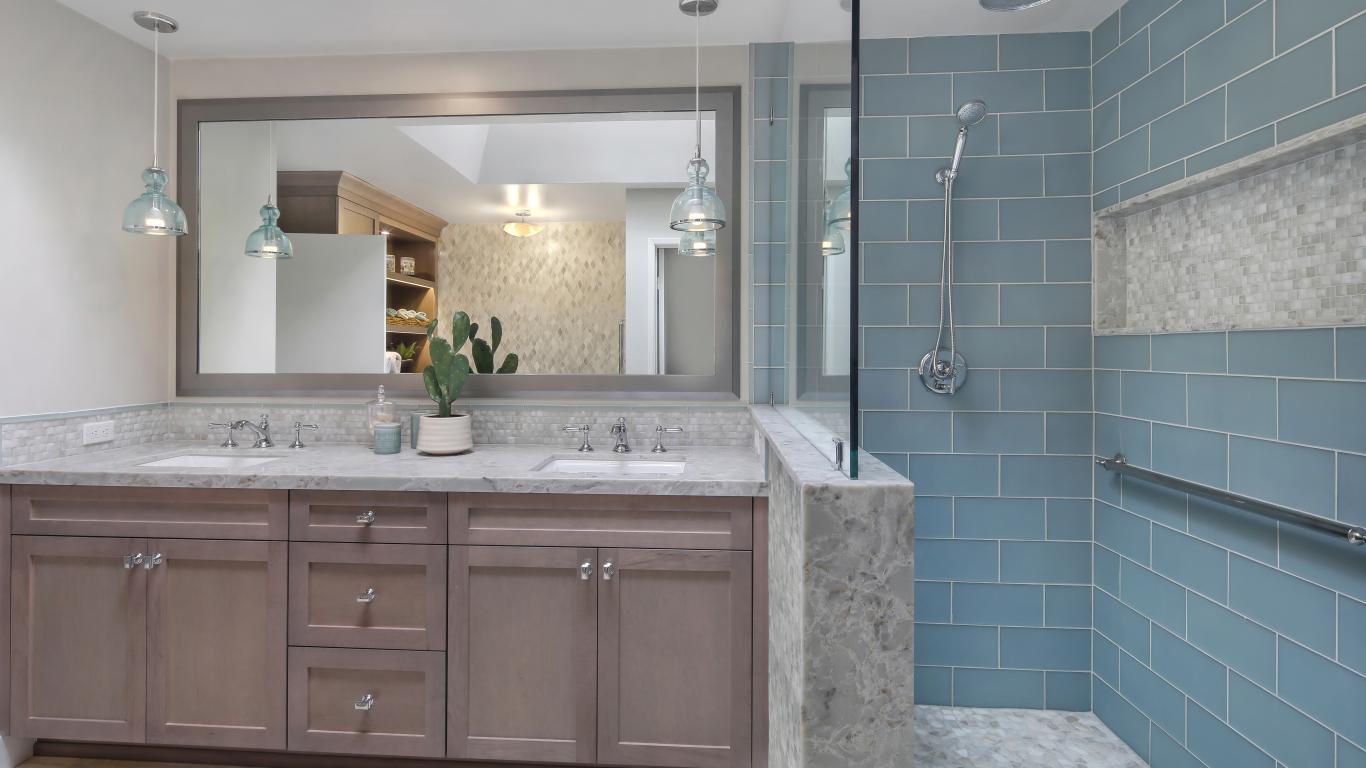 Wallpaper Bright bathroom with shower