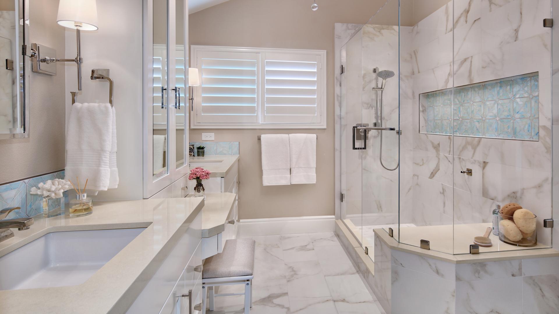 Wallpaper Bright bathroom with shower