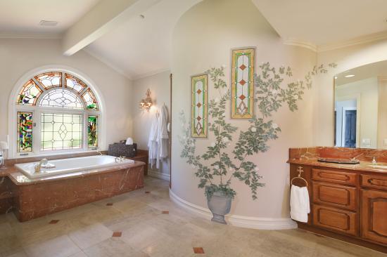 Wallpaper Large beautiful bathroom with stained glass window