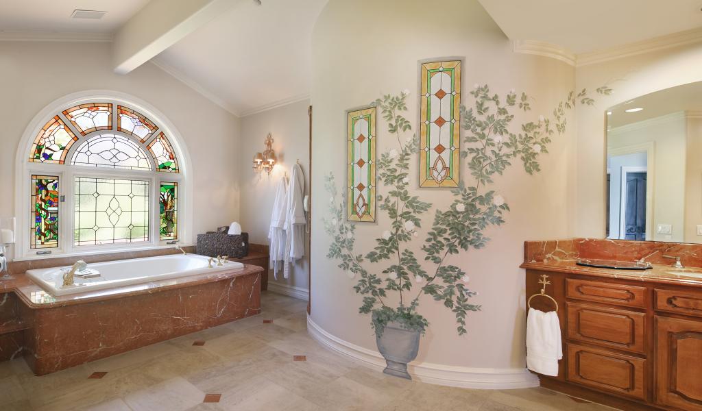 Wallpaper Large beautiful bathroom with stained glass window