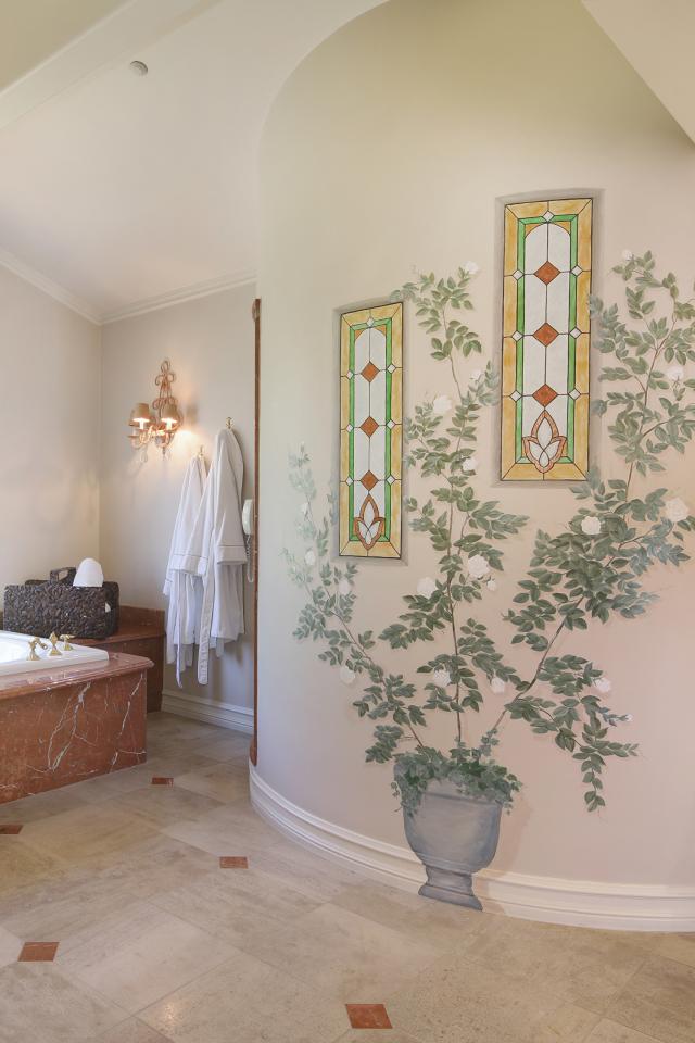 Wallpaper Large beautiful bathroom with stained glass window