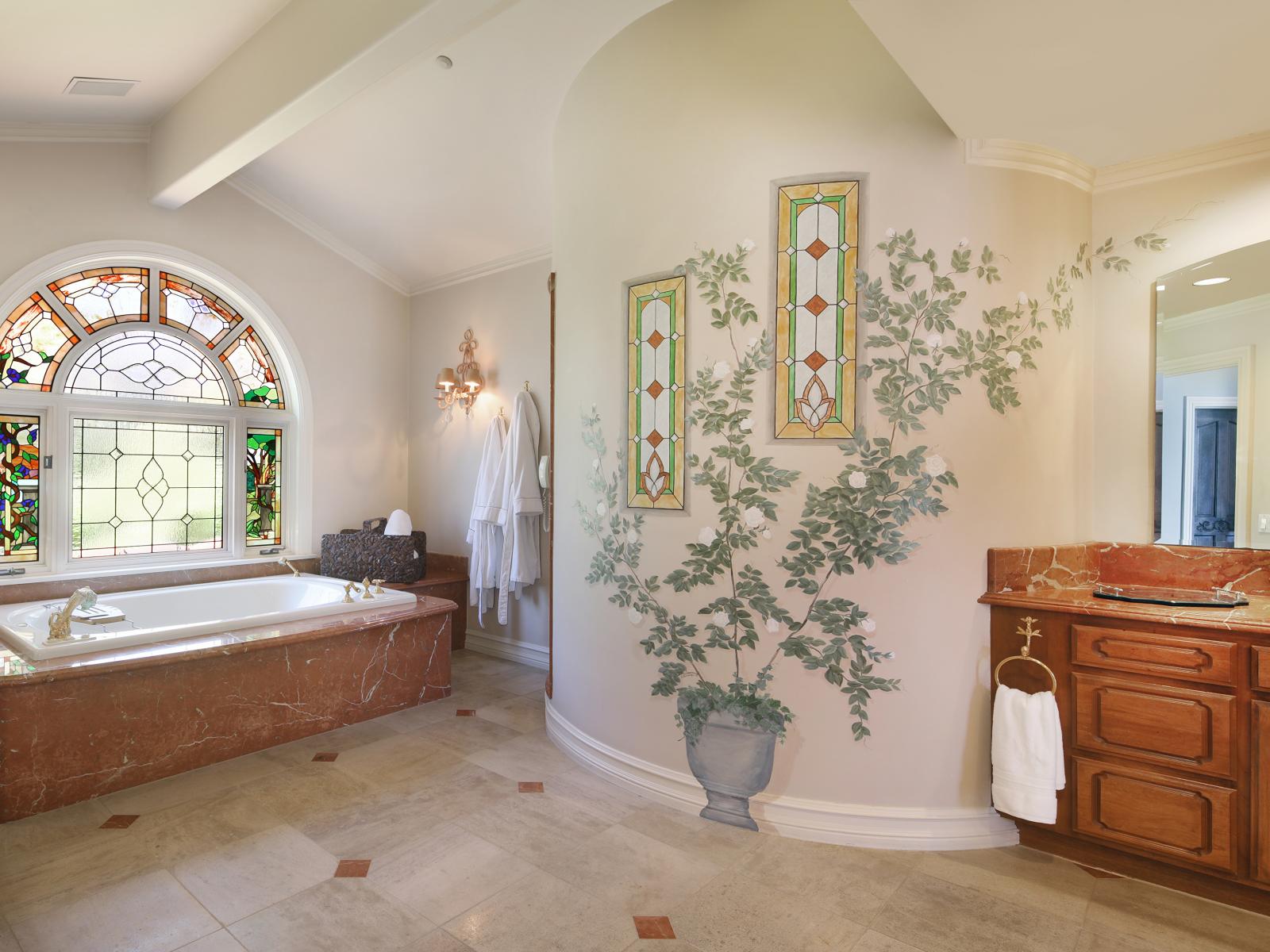 Wallpaper Large beautiful bathroom with stained glass window