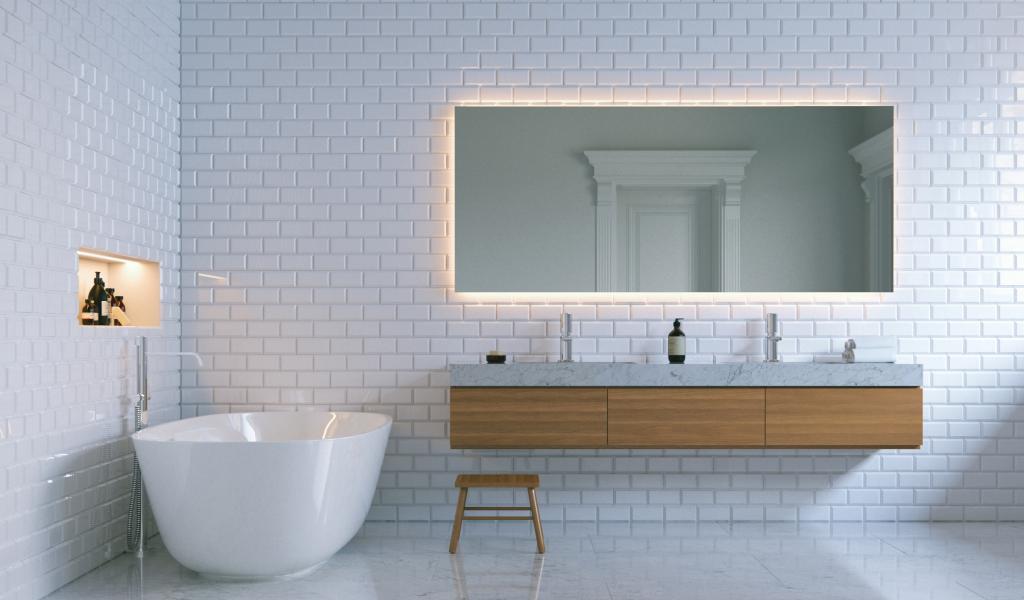 » Wallpaper Bathroom with white brick walls