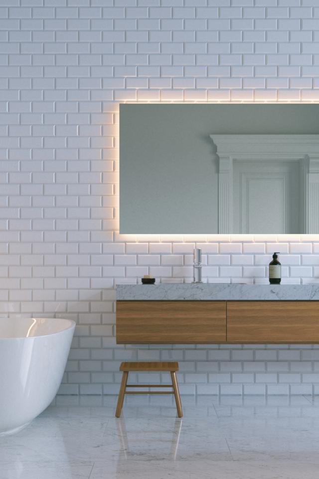 » Wallpaper Bathroom with white brick walls