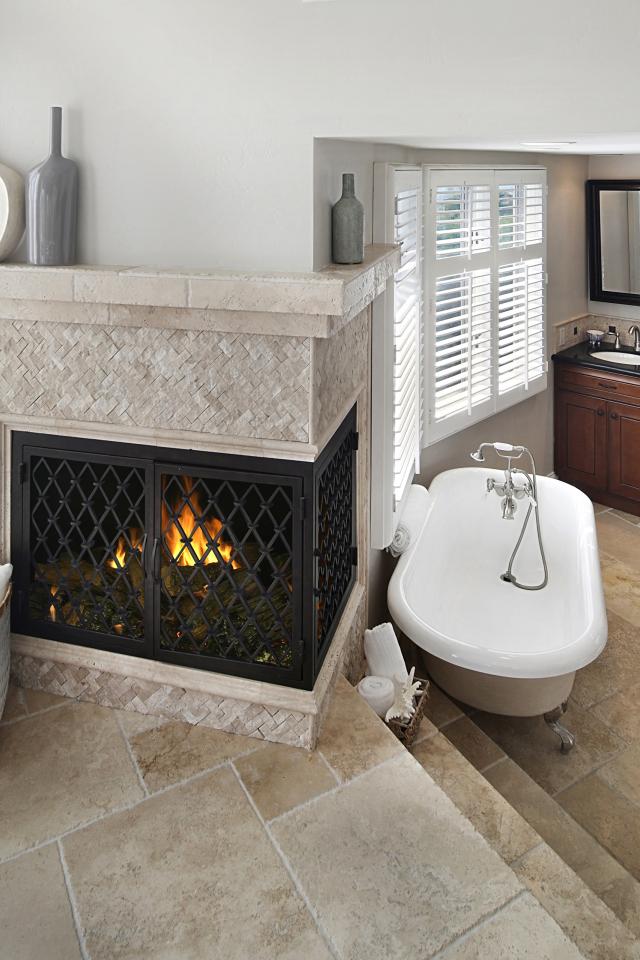 Wallpaper Bathroom with fireplace by the window