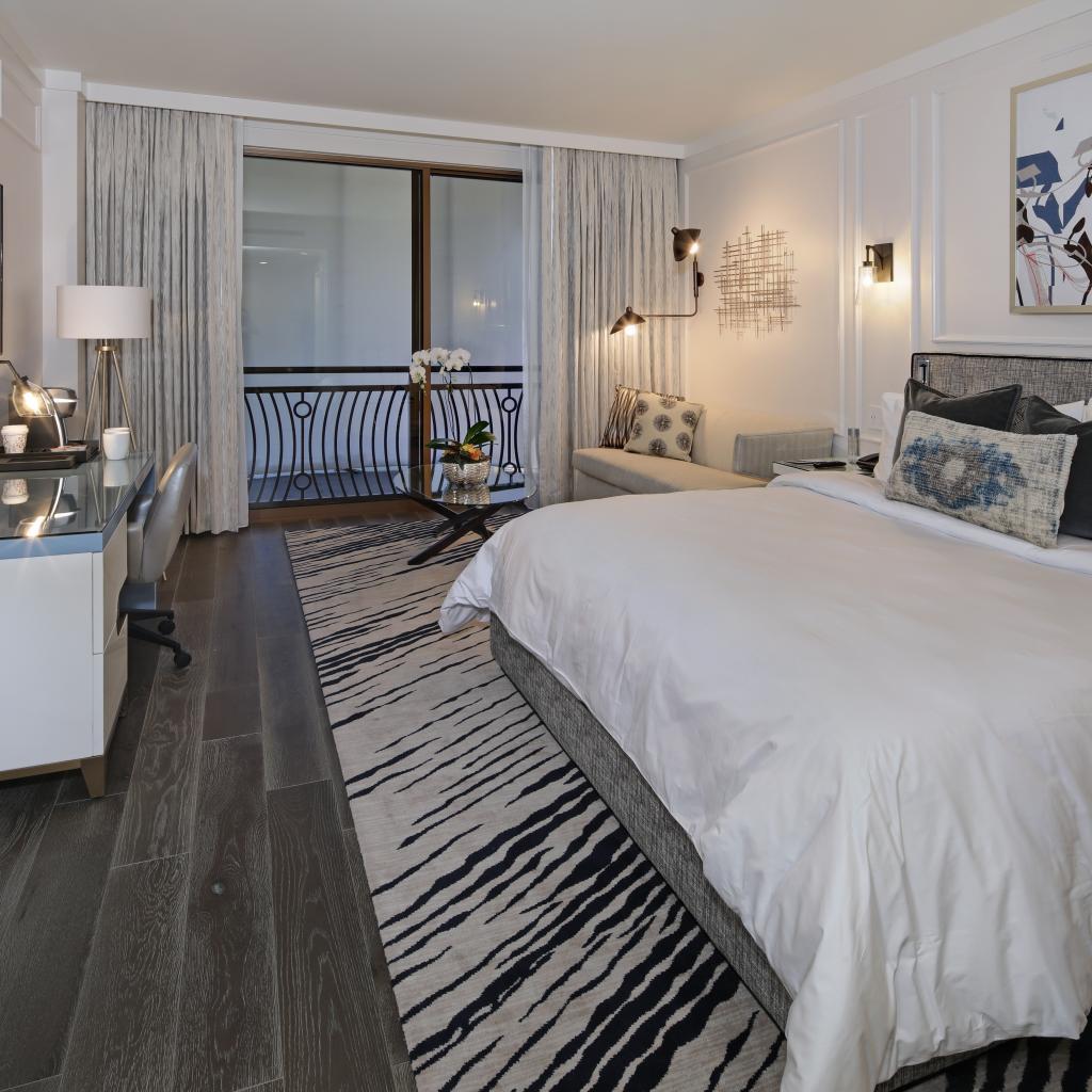 Wallpaper Bedroom with a large bed and a TV set on the wall
