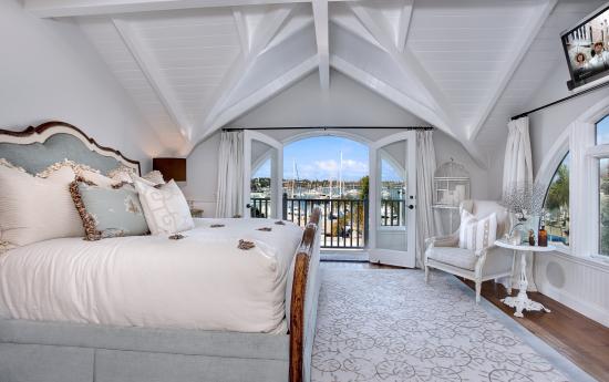 Wallpaper White bedroom with large high bed and balcony