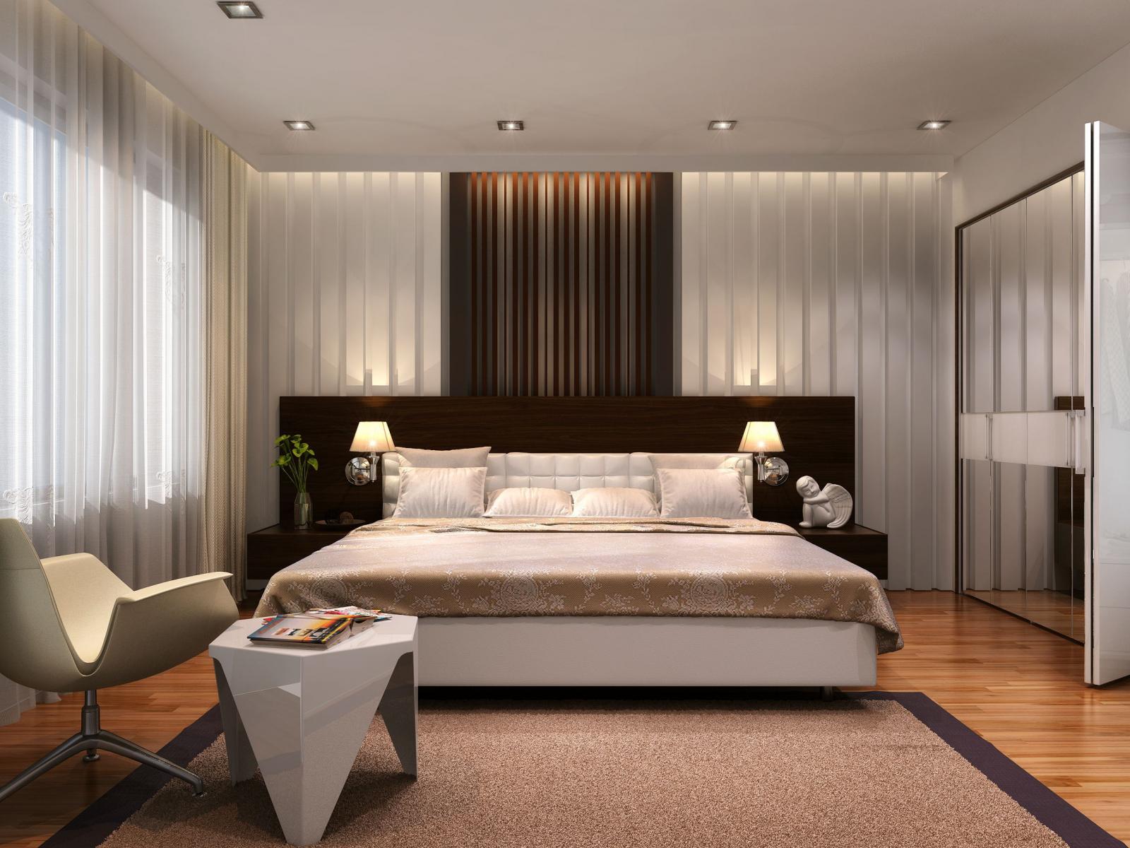 Wallpaper Large bed in a spacious bedroom with closet
