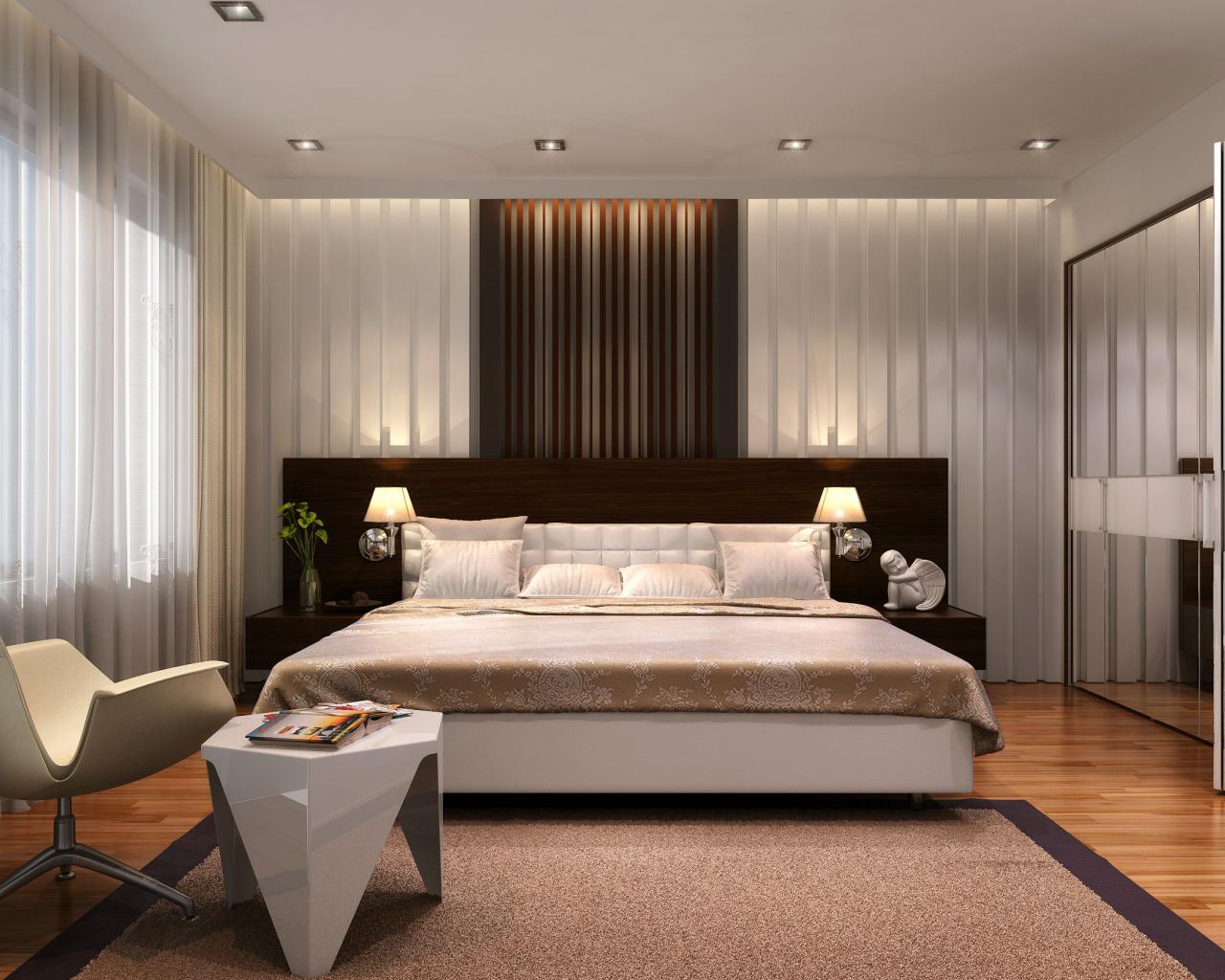 Wallpaper Large bed in a spacious bedroom with closet