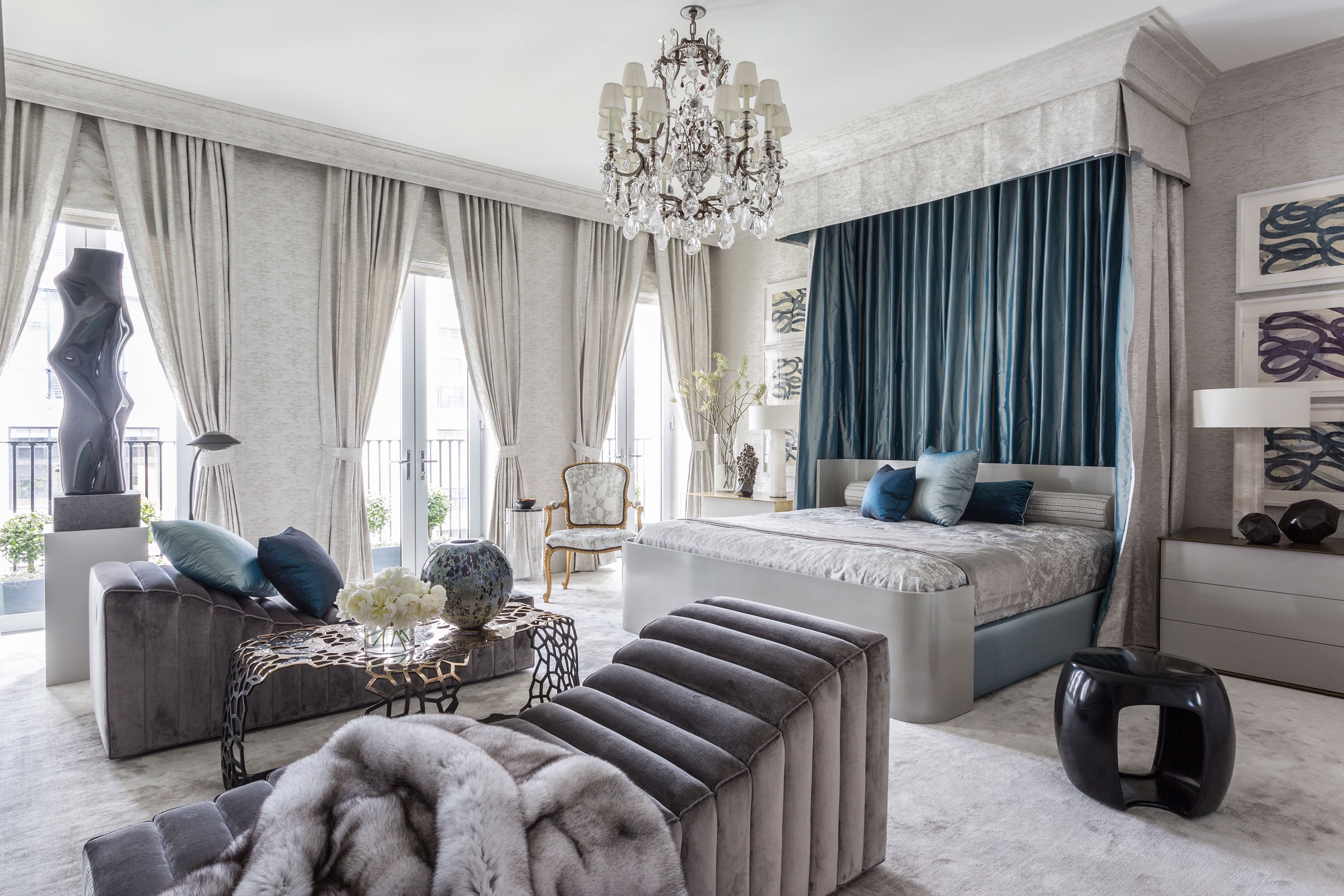 Wallpaper Large bedroom with furniture and large windows.