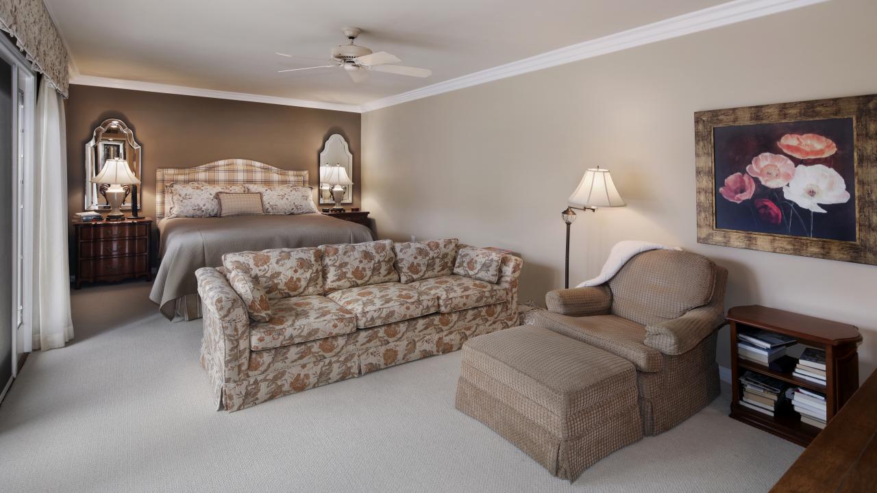 Wallpaper Gray bedroom with a bed, a sofa and an armchair