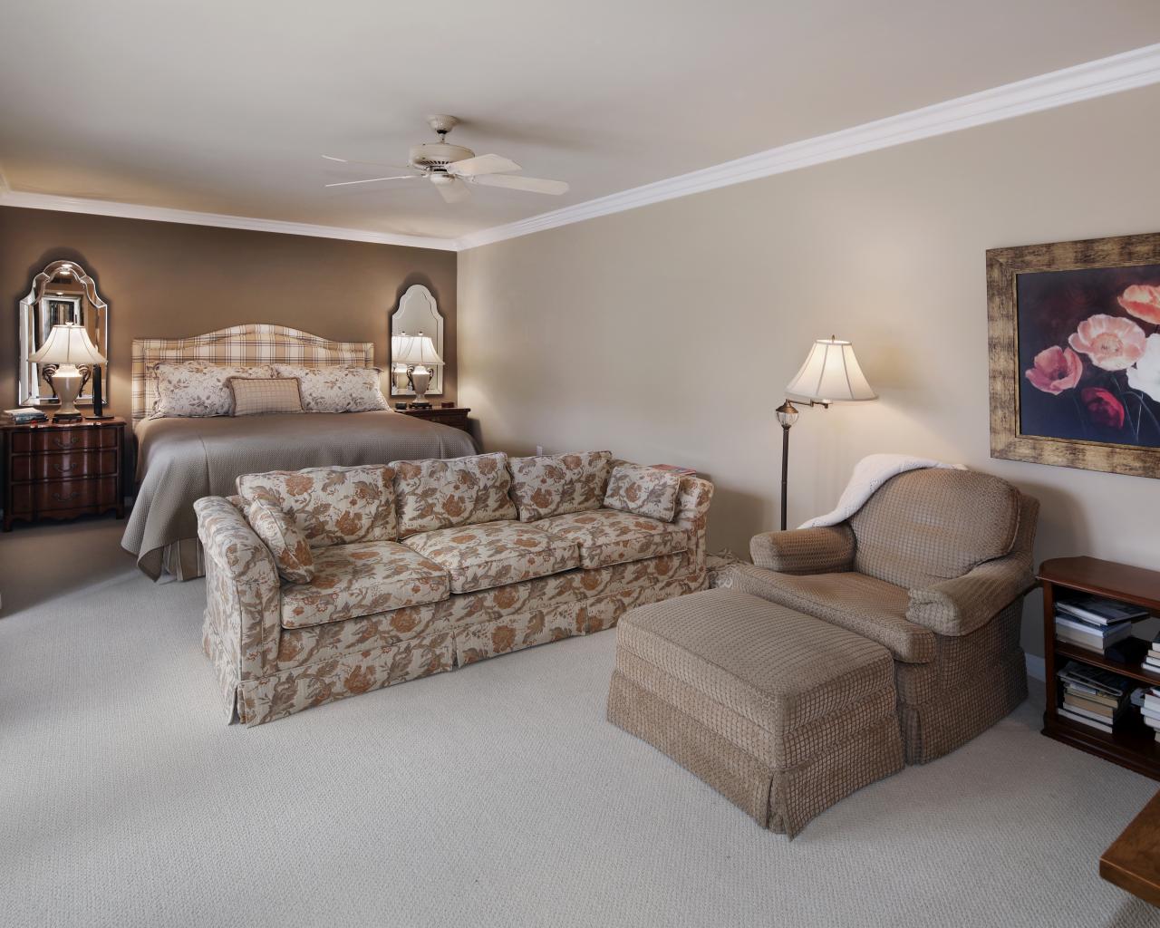 Wallpaper Gray bedroom with a bed, a sofa and an armchair