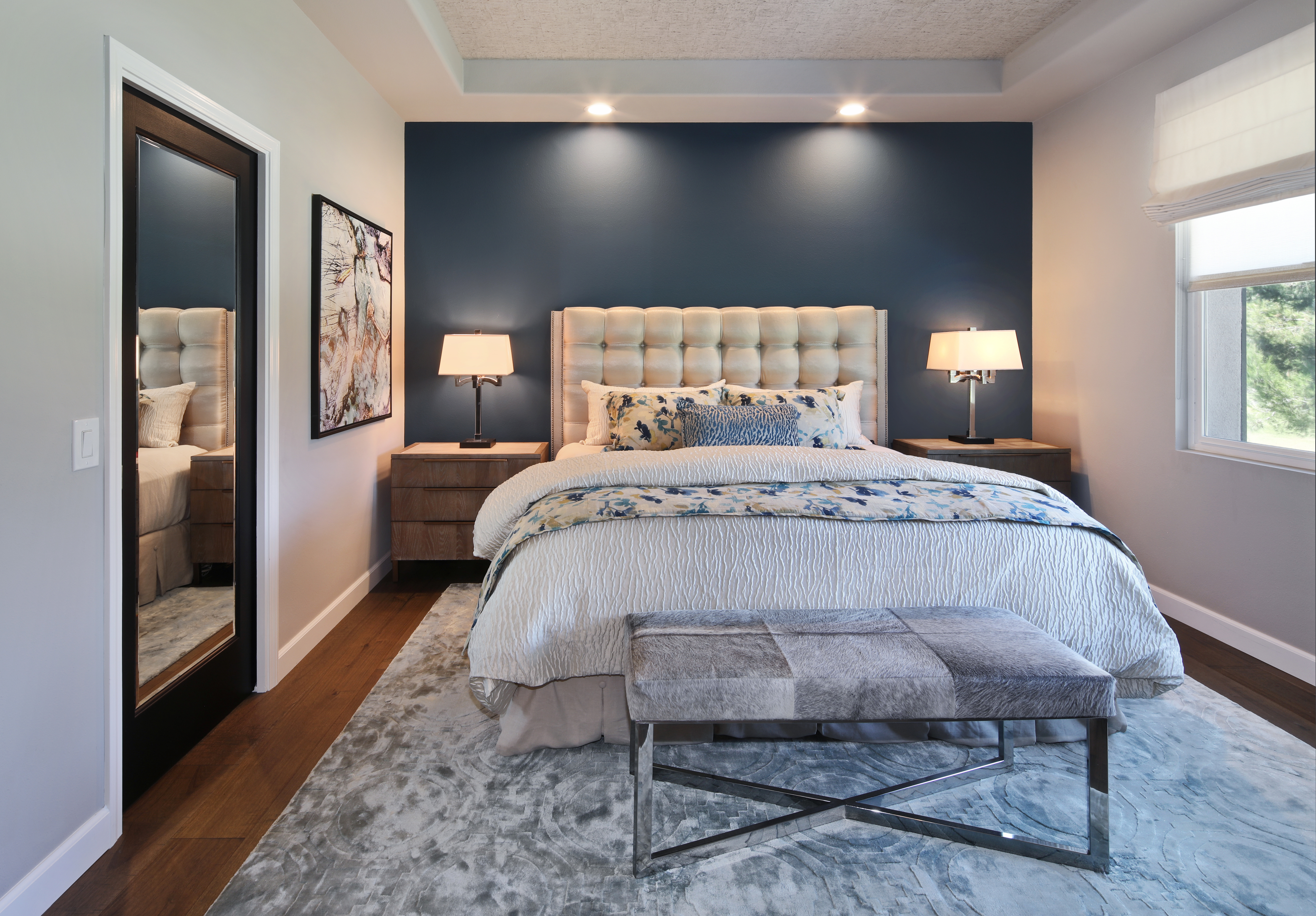 Wallpaper Bedroom interior with king size bed and two armchairs