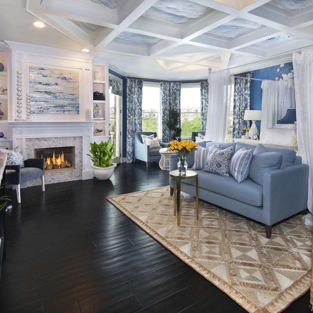 Wallpaper Spacious bedroom with sofa and fireplace
