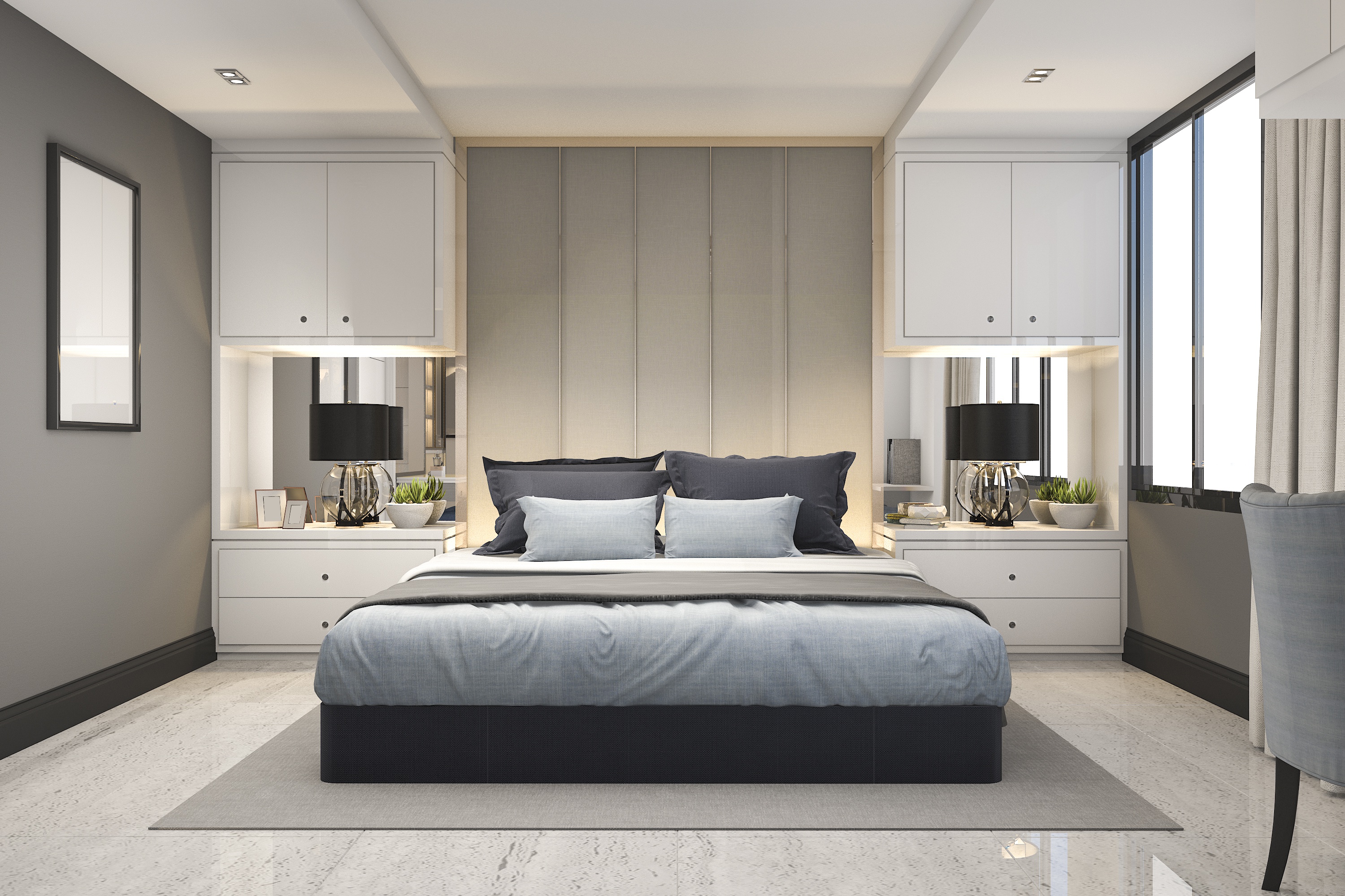 Wallpaper Large double bed in the gray bedroom