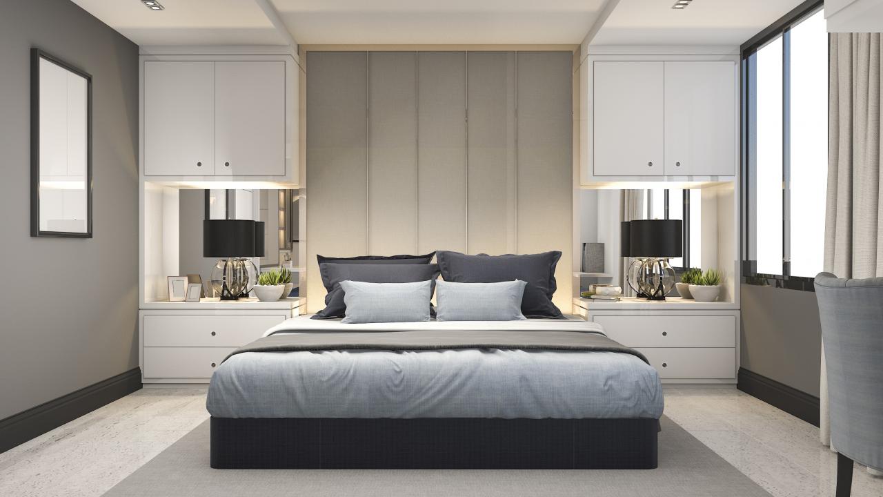 Wallpaper Large double bed in the gray bedroom