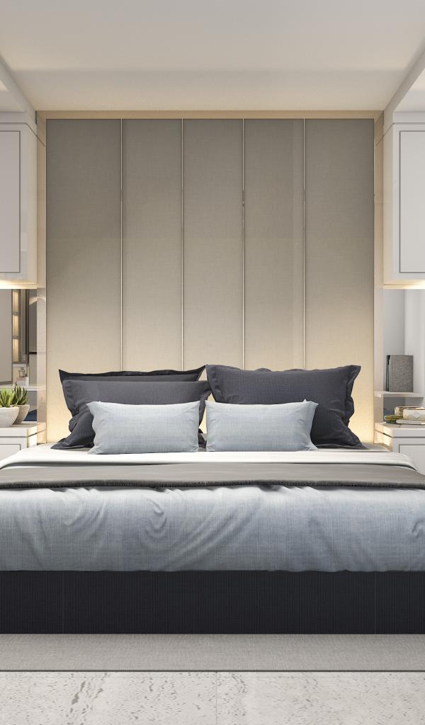 Wallpaper Large double bed in the gray bedroom