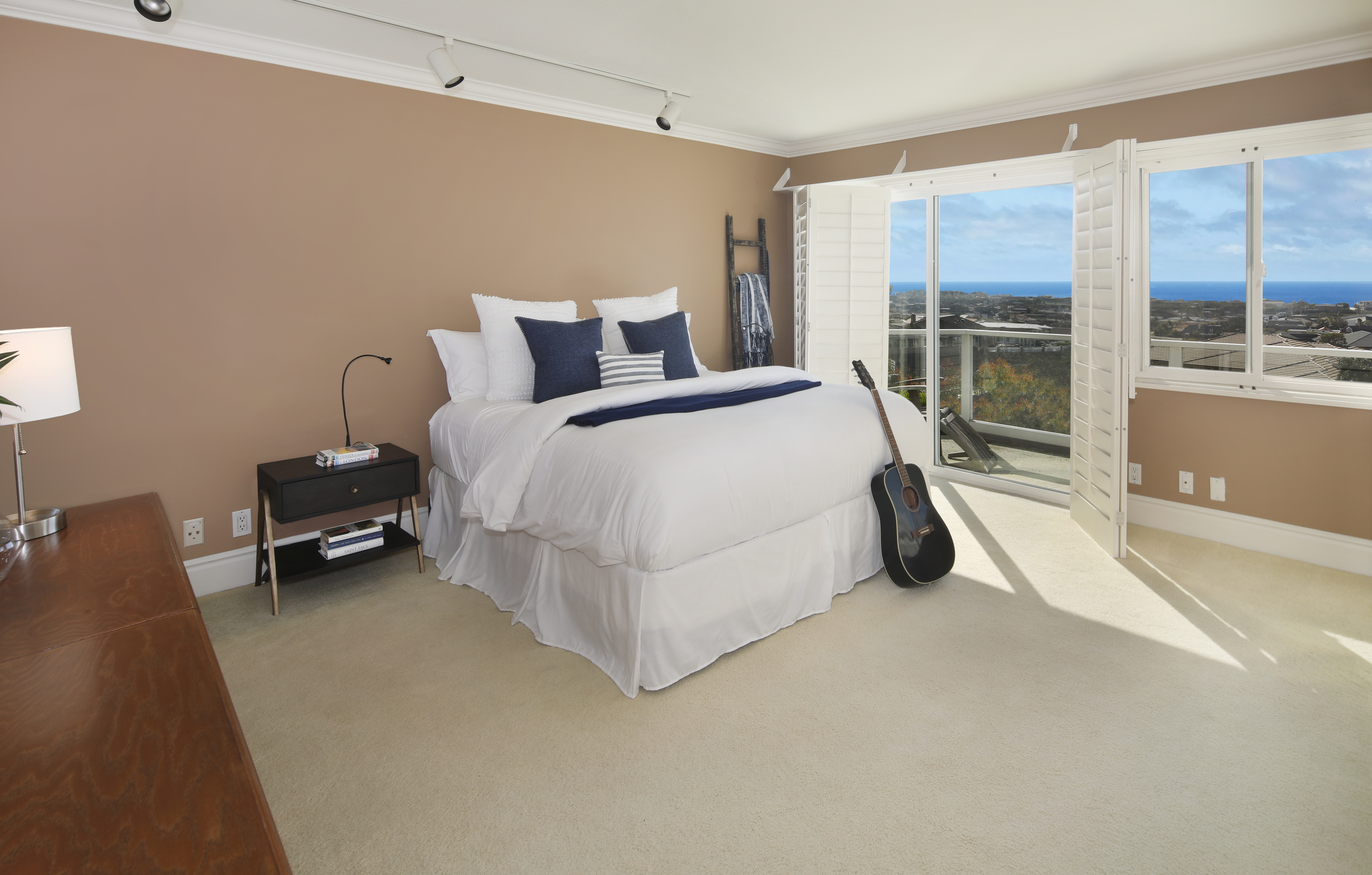 Wallpaper Large high bed in a spacious bedroom with a guitar