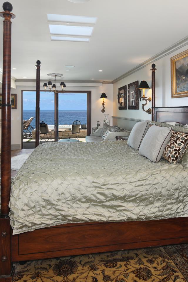Wallpaper Large wooden bed in the bedroom with sea view