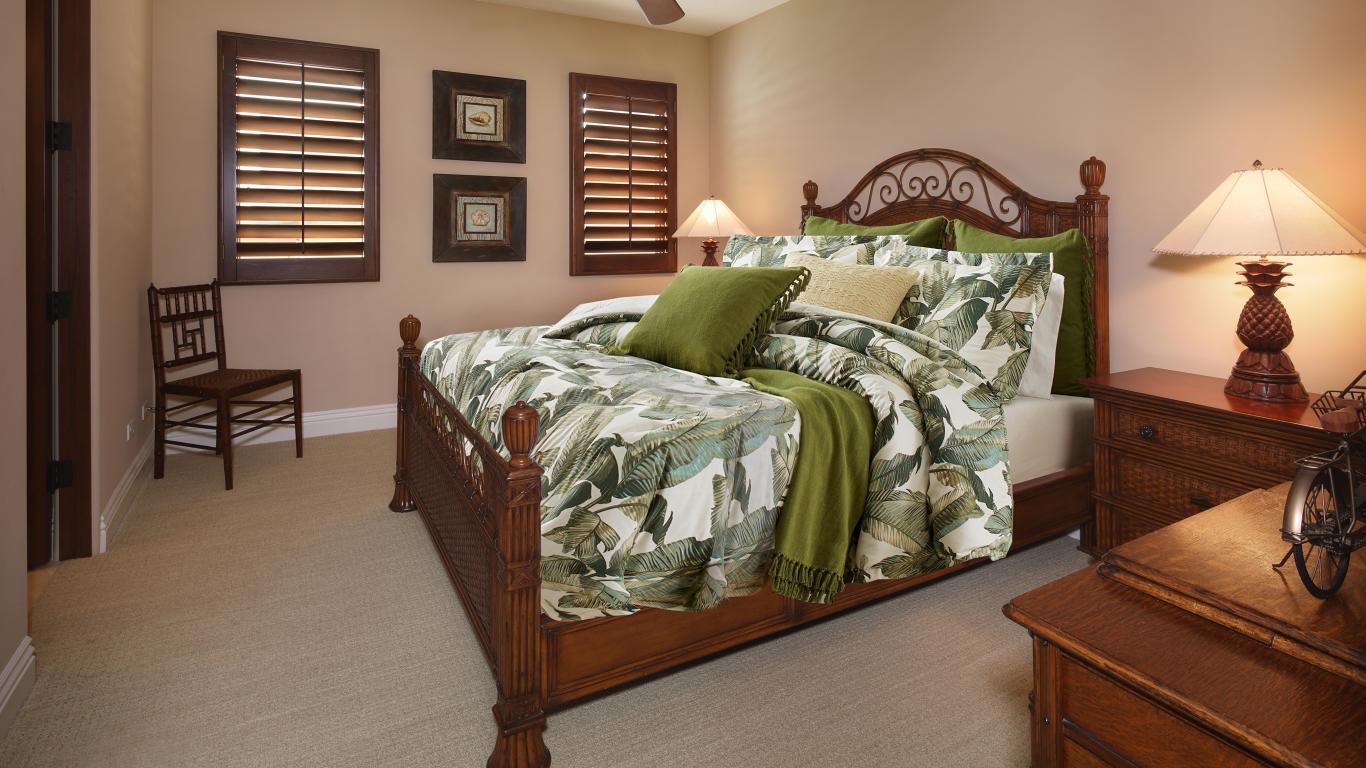 Wallpaper Large gray bed in the bedroom with wooden interior