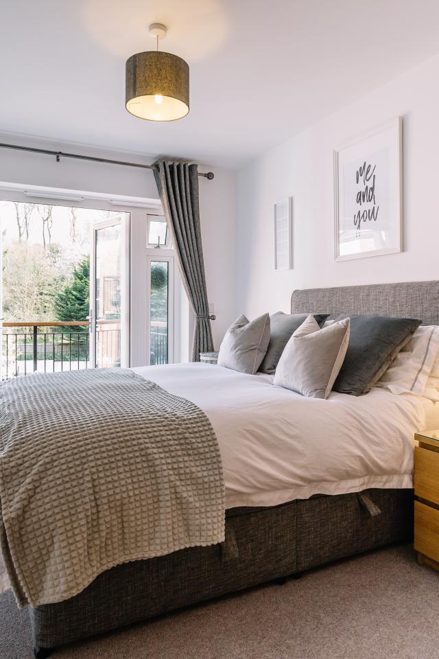 Wallpaper Large high bed in a room with a large window with a balcony