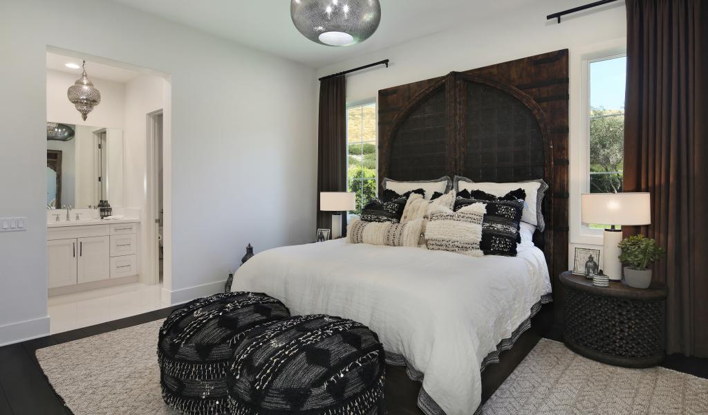 Wallpaper Large bed in the bedroom with large windows with curtains