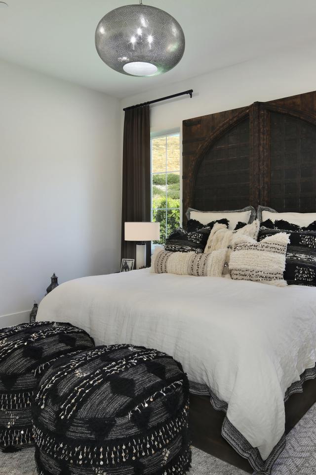 Wallpaper Large bed in the bedroom with large windows with curtains