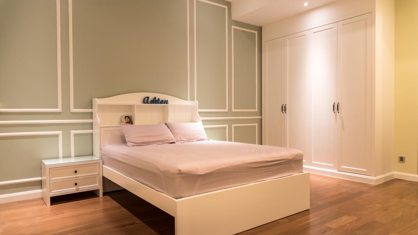 Wallpaper Bedroom with a bed in the style of minimalism