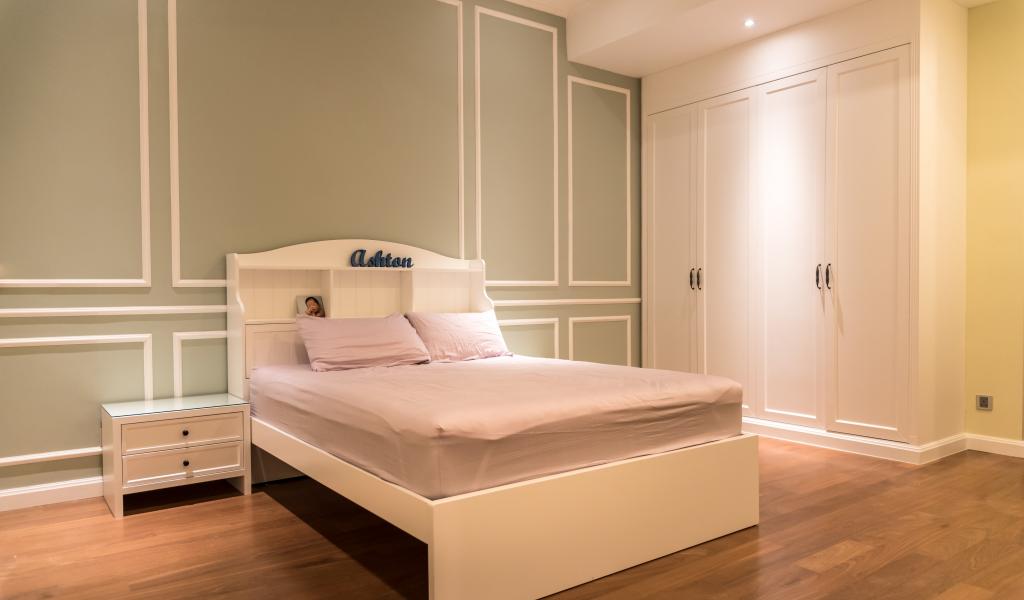 Wallpaper Bedroom with a bed in the style of minimalism