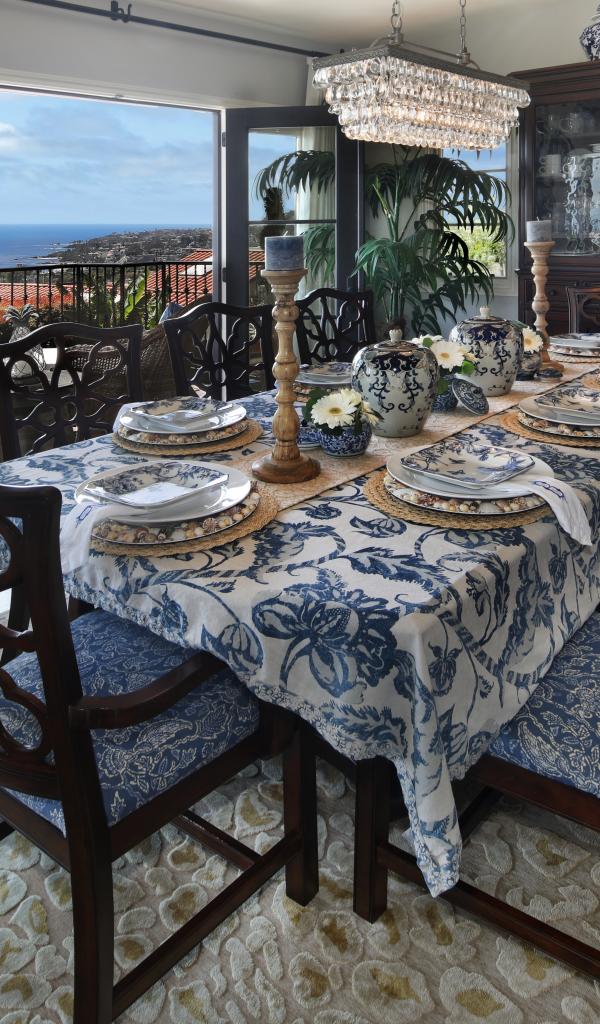 Wallpaper Dining room with large oak table and beautiful tableware