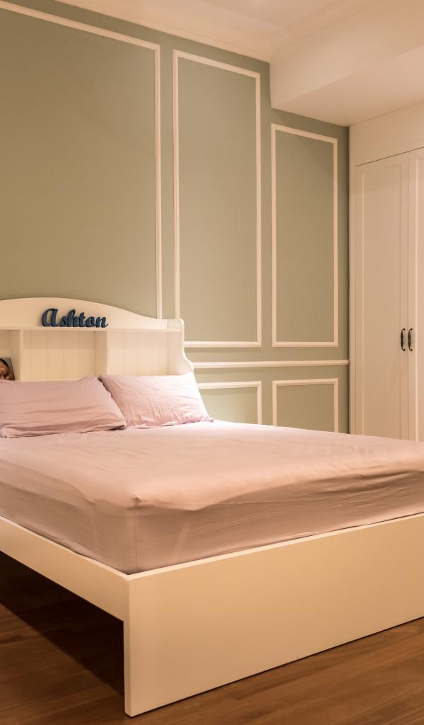 Wallpaper Minimalism style bedroom with a large bed